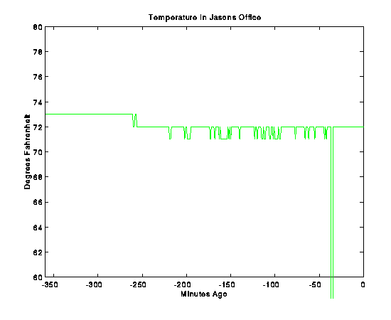 Every ten minutes a new graph of the temperature in my office over the last 6 hours is created..